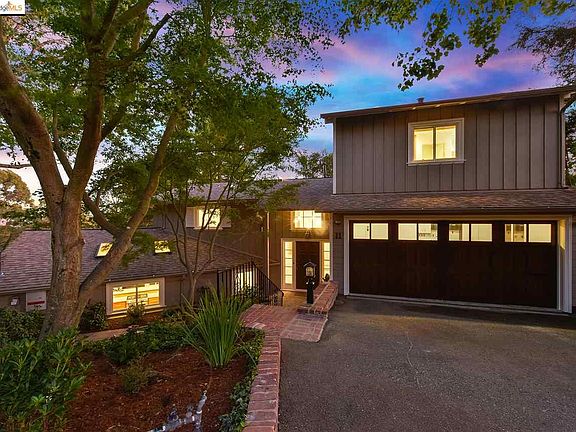 Quiet, green and tranquil but just minutes from the vibrant charm of Montclair Village. Great for entertaining, modern kitchen open to dining/living room with walls of windows overlooking large private deck & patio, landscaped yard and forested beauty. Tiered and fenced in back yard includes kids play area, extensive gardens and private pathway to Joaquin Miller Park. Inside two master suites, top one with spa like bath, bay views and elegant closet/dressing room. Family room and attached bonus room too. Green features including solar power, skylights, tankless water heater and EV chargers. 4 bdrm/3.5 bath.