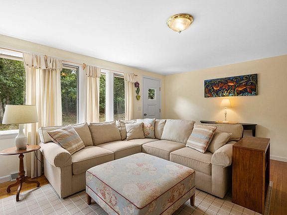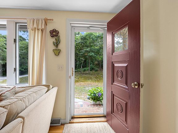 This well-maintained ranch in a hidden cul-de-sac neighborhood is the perfect retreat for Cape Cod getaways or year-round enjoyment. Simple and easy living is here, starting with a wonderful 3-season porch (not included in the square footage). A bright open floor plan features living room w/wood-burning fireplace & wood floor, kitchen with quartz counters & breakfast bar, and adjacent dining area that opens to the deck. Three bedrooms each provide a good-sized closet. The full bathroom in the hallway offers a double-vanity and tub/shower. Many updates including Central A/C (2023), 200-amp electric (2021), Roof (2021), Bulkhead (2024), double-walled stainless oil tank (2012), and more. Full basement ready to finish. Outside highlights include deck overlooking private back yard, outside shower, garden shed, ample parking, and 1/2 acre corner lot. Deeded rights to nearby Stillwater Pond are yours, where you can leave your canoe or kayak. This central location is convenient to Town, beaches, shopping & more. An exceptional value like this in Chatham is rare, do not miss out!