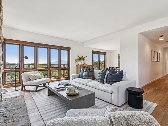 The views at 11 Overhill Rd feel like a work of art - city lights by night, water shimmering in the distance, and Mill Valley's wooded hills stretching all around. Lovingly built and updated by the same family for over 50 years, this thoughtfully designed two-level home blends timeless function with everyday comfort. The main level is bright and welcoming with wide-plank floors, a living room that flows into the dining room, a light & bright kitchen w/stainless appliances, newly painted cabinets and bar seating,and a warm family room with wood ceiling and brick fireplace. A deck spans the length of the home, connecting to the main rooms and framing the spectacular outlooks. A powder room and pantry add everyday ease. Downstairs, four bedrooms and two baths offer space for all. The primary suite has sweeping views, ample closets, and en suite bath; the additional bedrooms each enjoy unique vistas. A laundry room and abundant storage enhance the level, with fresh updates throughout. The spacious lot invites creativity - garden, play, or sanctuary - while a two-car garage offers flexibility for cars, storage, or workshop. Located in the coveted Northridge neighborhood, conveniently near schools, Camino Alto Open Space trails, multi-use path, amenities and 101 freeway.
