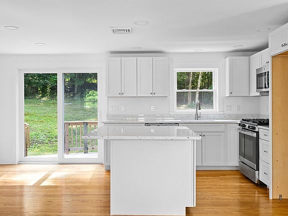 A stunning professional remodel, this home is fully updated and ready to go. 3 bedroom, 2 full bath raised ranch w/ beautiful hardwood floors in the main living area which has been reconfigured to maximize the natural light. Open floor plan and a bright, modern kitchen w/ quartz countertops, island, dining area w/ slider access to large wraparound deck, living room w/ oversized windows & recessed lighting. Three bedrooms w/ ample closet space (including one w/ laundry hook-ups), full bath w/ spa tub & shower and en suite access to the primary bedroom. Fantastic fully-finished basement w/ family room, full bathroom w/ shower, wet bar w/ quartz countertops, additional laundry hookups & single-car garage. Great yard and deck. Roof, siding, driveway, site drainage, on-demand hot water heater, stone retaining wall & renovations all done w/in the past 3 years APO. Central air serves the 1st floor w/ a heat pump serving the basement. Highest & best due by 5pm on Monday 9/9. No escalations.
