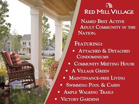 One of the most desired floor plans and ideal location within Red Mill Village "The Bailey" is an end unit & is now available in "LIKE NEW" condition. This is a stunning open floor plan that offers a grand entrance in it's two story foyer featuring a bridal staircase with oak treads. The family room features a gas fireplace and an exceptional number windows that filter in an amazing amount of natural sun light. The open Kitchen offers fine cherry cabinetry, stainless steel appliances, granite counter-tops and a center island with bar seating that is open to the dining room. Floor plan also features a Den on 1st floor. Gleaming Hardwood floors. 1st Floor Master Suite, Master Bath, offers a whirlpool tub and ceramic tile shower enclosure with glass door. Second Floor has guest Bedroom & Loft. 2 car garage & a beautiful private patio. This is an extraordinary award winning Active Adult Community min from I495 & train, NOW age 50+ is ok in a limited no of sales.
