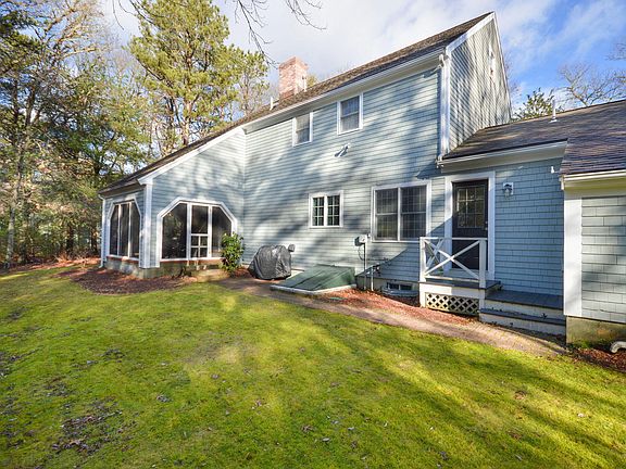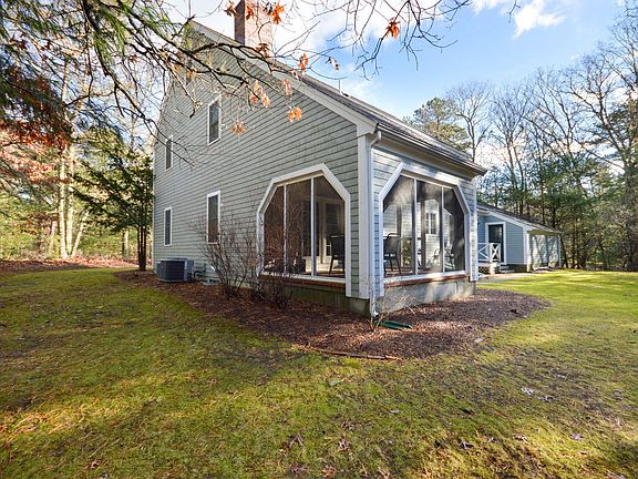 Located on a private lot in village of Sandalwood is this well maintained home.The first floor has hardwood throughout with a fireplaced living room, another fireplace in a comfy Great Room with french doors leading to a screened in porch, brick flooring,ceiling fan., and a full sized dining room. All these rooms have ceiling fans and plantation shutters. The kitchen has been updated with cozy eat in kitchen, granite counters, newer appliances, just charming. Mud room and laundry on this floor. Upstairs are 3 lovely bedrooms. The Primary has walk in closet and a lovely bathroom with sauna/steam shower. Just off Primary is a functional room that can act as an office, a sitting room, a quiet place to read. This home is walking distance to Roche and Mashpee Commons. And if you want to join New Seabury club, you can as Sandalwood is part of New Seabury.