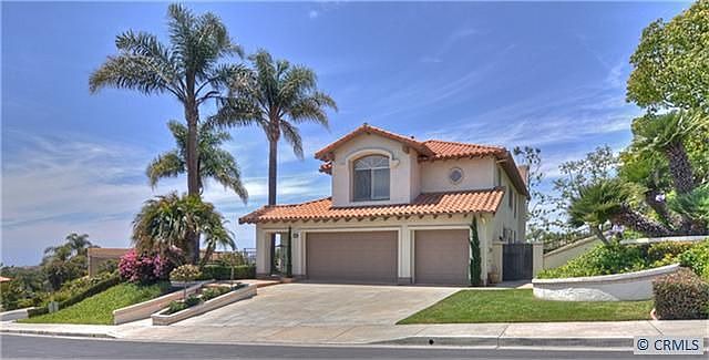 A timeless blend of traditional elegance and spectacular sunset views located in the gated community of Bear Brand Ridge. The premium corner lot is situated on a cul de sac with ocean breezes and views. The interior space is entered through a gated courtyard with an ocean view, leaded glass door, and includes 4 bedrooms and 4 bathrooms. The home is completed with a media room with in-ceiling speakers that feature beautiful, unobstructed sunset views of San Clemente and Catalina islands. The state of the art remodeled kitchen is the heart of the home. It has custom cabinetry, built in refrigerator, granite countertops, and breakfast nook. The open floor plan adjoins the kitchen, family room, and backyard for family enjoyment. Formal living and dining rooms enjoy ocean views and high cathedral ceilings. A grand master suite with ocean views from the private balcony includes soaking tub, separate shower, and large walk in closet. There are 2 additional en suite upstairs bedrooms. One which could be used as an additional master suite. The final bedroom is on the main floor. The serene backyard offers several entertaining areas with grass and mature landscaping. 3 car garage.