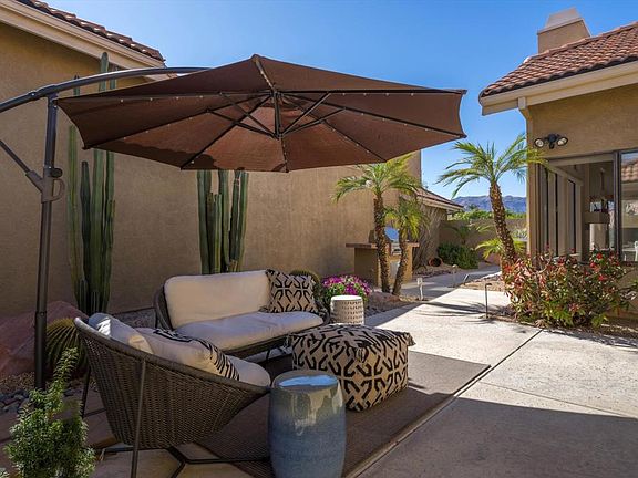 This BEAUTY is back on the market- Nestled in a picturesque sun-soaked landscape of Palm Desert, California lies this gorgeous piece of real estate. This two bed, two bath G-plan has been impeccably updated with modern finishes and furnishings, making it a contemporary oasis in the desert. The courtyard reveals serene southern and western views of the San Jacinto mountain range - an ideal spot to bask in the gorgeous desert weather while entertaining family and friends around the built-in BBQ. Silver Sands Racquet Club provides you with 15 pools/spas, pickle ball courts, tennis courts, and a fitness center to enjoy a fully active lifestyle. Plus, its unbeatable location close to Eisenhower Medical Center and El Paseo offers easy access to some fantastic restaurants. And best of all...This home is being sold furnished per inventory. Don't wait - make this little slice of heaven your reality today!