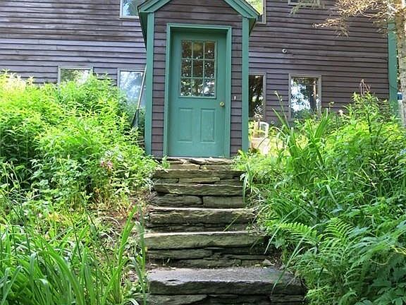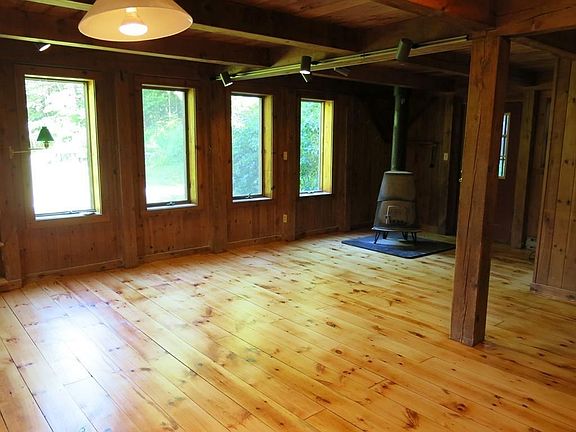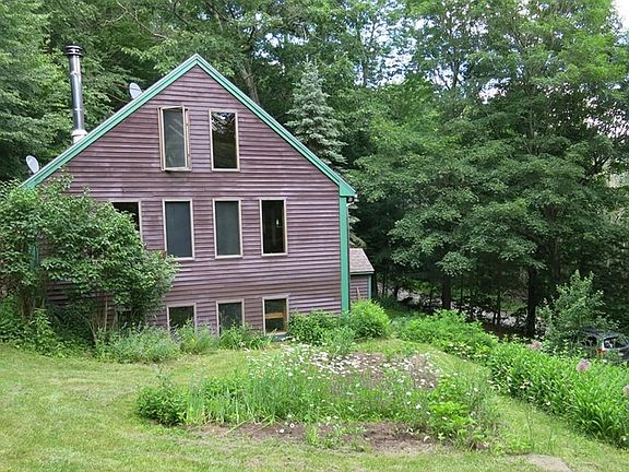 This timber framed home sits on a south facing hillside. Open concept living area has a wood stove which does a good job of heating this well insulated home. Large working area in the kitchen is open to this living space. You can walk out at this level to an ample wood storage area & a garden shed with a very fun garden fancy studio above with found stained glass. There is a bathroom on each level. 3rd floor master bedroom with skylights or should we call them moonlights since you can watch the moon easily while lying in bed. 1st floor has 3 bedrooms & another full bath & laundry. Wood floors have been recently refinished. Terraced gardens of raspberries & other fruits are doing well on this south facing hillside + other outbuildings. Walk to Earthdance and to a swimming hole in the Westfield River. Cummington is halfway between Northampton and Pittsfield. 45 minutes to MASSMOCA . There are a plenty of cultural activities in the area plus many beautiful wild areas to explore.