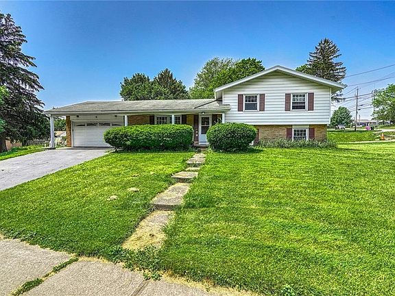 WOW, almost 2000 square feet in this Split Level home on a .36 acre lot in a desirable north Greece neighborhood ~ 4 true bedrooms & 2.5 baths ~ New kitchen cabinets, tile backsplash & countertop approx 3 yrs ago ~ Updated windows ~ Original hardwood floors on main and upper level ~ Nice formal living room & dining room plus huge lower level family room with w/w carpet, 4th bedroom or office, half bath, and full bath w/ laundry area & walk out to the back yard ~ Unfinished, dry basement area offers lots of storage space! Outside you will enjoy the front porch, double wide driveway/2 car garage PLUS an extra driveway/parking area (great for a camper, work truck, or guests) & low maintenance brick & vinyl siding ~ Extremely convenient location just about 1 minute from the expressway and close to lots of shopping/dining options ~ The possibilities are endless with this space, come take a look!