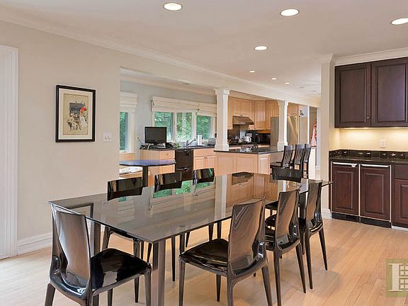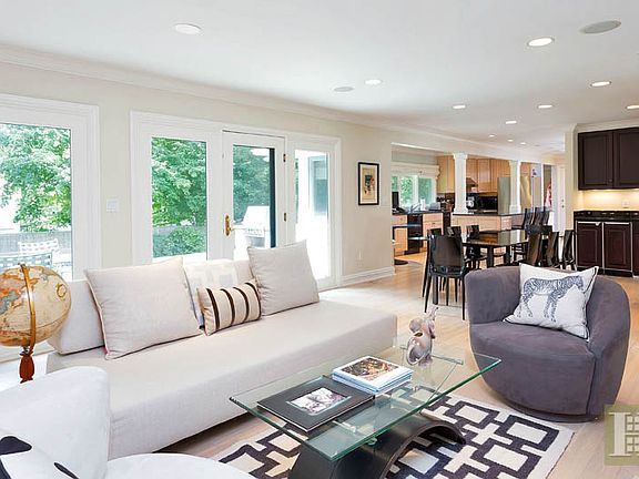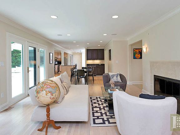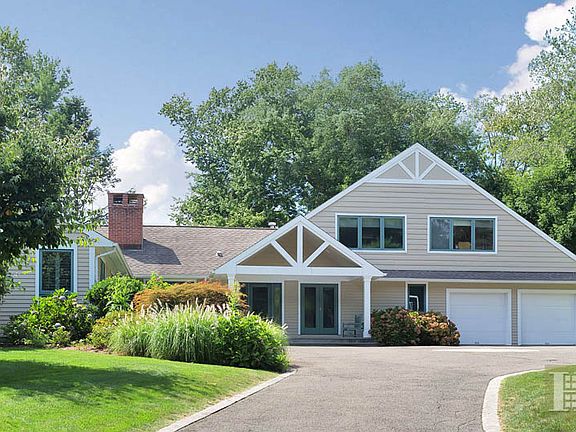 Sophisticated home with an open floor plan is ideal for entertaining and for easy living.This light filled home with walls of windows & French doors, offers stunning views of the beautiful flat landscaped property . The first floor boasts a master bedroom suite w/office/sitting room and a private south facing terrace. A guest BR with en-suite bath is also on this level. Two additional BR's and a playroom are on the 2nd floor. This stylish contemporized home is on a cul de sac close to town.