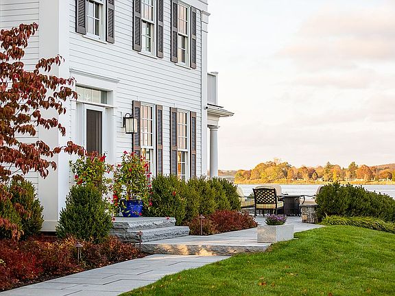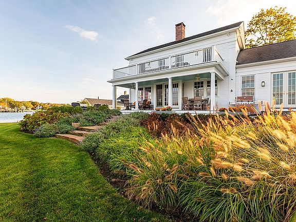 Located on the only riverside cul-de-sac of the Mystic River; one of a kind waterfront home with superior professional landscaping, ornamental gardens, stone patios, seawall, paver driveway, your own 30' dock and moorings. With over 500 feet of frontage on the Mystic River! Contemporary gas fireplace, open porch with hardwood deck, 3 car detached garage, paver driveway, large stone patio, dock, seawall, den with bar area, raised panel walls, crown moldings, cathedral ceilings. Home was extensively renovated within last 2 years and is in overall excellent condition. Contains quality finishes and unique architectural details.