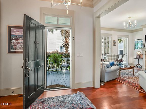 Traditional and inviting describe this Coosaw Point Home. Very large verandas located on both floors that view the tranquil pond plus a screened porch leading to a private courtyard make this home unique on the outside. Step inside to this Eric Moser design and Galiant Builders construction and notice the workmanship and attention to detail. The home features Brazilian cherry hardwood flooring, 10'' foot ceilings, w/extra deep crown moldings, custom built-ins, and millwork. Plantation shutters, wainscoting, unique lighting, and a gas granite surround fireplace are some of the many features. The floorplan flows well while also providing separate living/work/flex spaces to accommodate modern lifestyles. The owners suite is on the first floor. The kitchen boasts ceiling height cabi a gas range, double porcelain farmhouse sink, granite counters, stainless appliances, and pantry. There is nothing cookie cutter or mundane about this unique custom home. It takes advantage of the property and 2 car garage has floored attic for more storage.