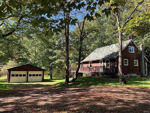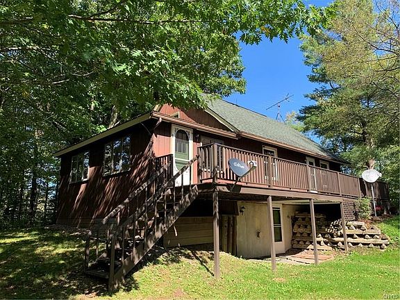A HIDDEN GEM! This quaint well maintained home sits on over 3 partially wooded acres. A spacious KIT/FAM room w/cathedral ceiling offers plenty of room for entertaining. Windows throughout provide natural light & a view of the quiet stream flowing behind the house. Relax on the attached deck & enjoy the wildlife that roam freely around the yard. 2-1st floor Bedrooms & a lg open loft upstairs- use as office, workout, toy/game rooms. A full walkout basement will provide workshop, storage, laundry or can even be finished off for addl BR. Use the gas heater on the wall or reinstall a woodstove for additional heating options. Newer roof, windows, flooring & BA. Close to Lake Ontario beaches, Salmon River, boat launches & minutes from Rt 81-centrally located between Oswego, Syracuse & Watertown.