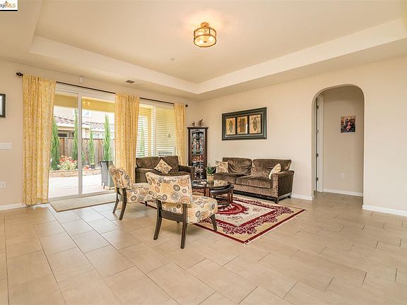 Sweeping Archways in this Sharp Single Story Await! Just Built in 2015 this Immaculate Home boasts an Eat-In Kitchen with Dark, Rich Cabinetry, Stainless Steel Appliances, Granite Countertops, Large Island, a Pantry with Fluted Glass Door, and Breakfast Bar. Large Family Room with Contemporary Rectangular Tile Flooring, a Separate Formal Living Room, 4 Bedrooms, plus 3 Full Bathrooms. Fully Landscaped Backyard with Stamped Colored Concrete, Beautiful Slate Retaining Wall, and Covered Patio with Built-in Fireplace are all Perfect for Entertaining. Corner Lot near Lush Park and Ball Field. A Move-in-Ready Gem!