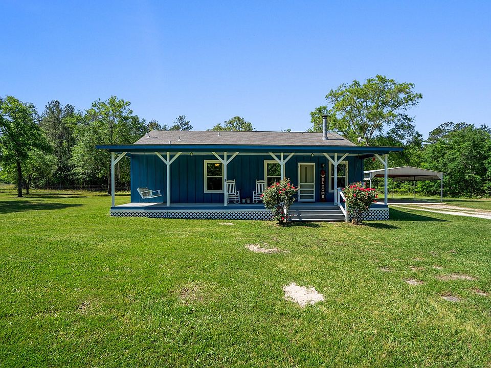 WOW! This beautiful country home on three acres is ready for you. Pristinely maintained and cared for, this 3 bedroom 2 bathroom home has plenty of room; inside and out. Open concept layout allows family members/guests to be spread out; yet still connected. The "dining room" could easily be a second living area, a play room, workout area, or hobby room. The office is centrally located and can be used for many purposes. There are 2 primary bedrooms in this home. In the last few years, this house and property has been updated with new hardwood floors, new siding/fresh exterior paint, new roof, pipe fence with electric gate, windows, carpet and carport. 4 stall barn with electricity and water will accommodate livestock, storage, or whatever hobby you enjoy. Additionally, this home has a large full length covered front porch, perfect for relaxing and enjoying the surrounding acreage. Dont miss out on this beautiful property that is perfect to be your new home.