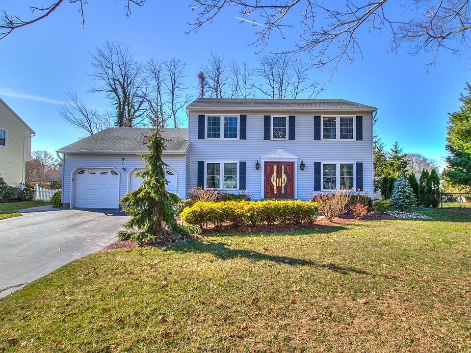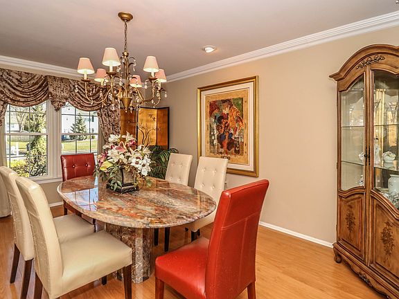 Located at the end of a cul-de-sac in Meadowood Est. Beautiful 2-story entrance foyer colonial home w/4 BR, 2 ½ baths, finished basement. Over $150,000 in Home Improvements! Custom design front door, crown moldings, 34 recessed lights, commercial grade tile flooring, newly installed windows w/triple insulation, kitchen w/granite counters, SS appliances (brand new stove) & maple cabinets, new furnace, new HWH, custom window treatments, custom design paver entrance, walkway & brick patio. Breakfast area overlooks the backyard, ready for summer BBQ and entertaining. FR w/custom drapes & wood burning fireplace. 1st floor finishes with custom 1/2 Bath & laundry room w/storage cabinets. 2nd floor Master Bedroom has 2 closets, an updated modern bath, 3 additional bedrooms & updated full bath. Finished basement provides loads of entertaining for the family. 2 car garages, professionally landscaped grounds, fully fenced back yard, alarm system, & more! The True Gem!