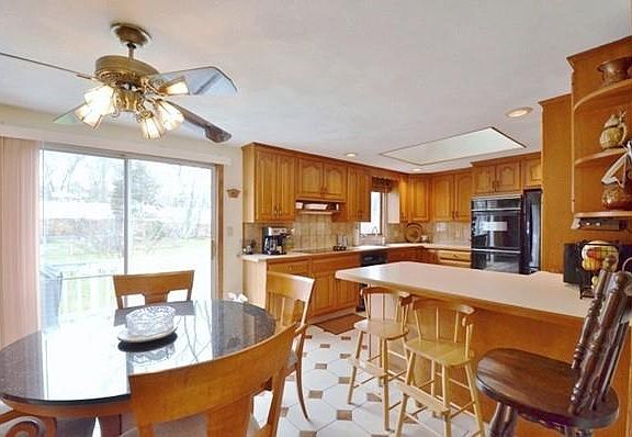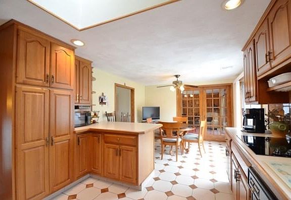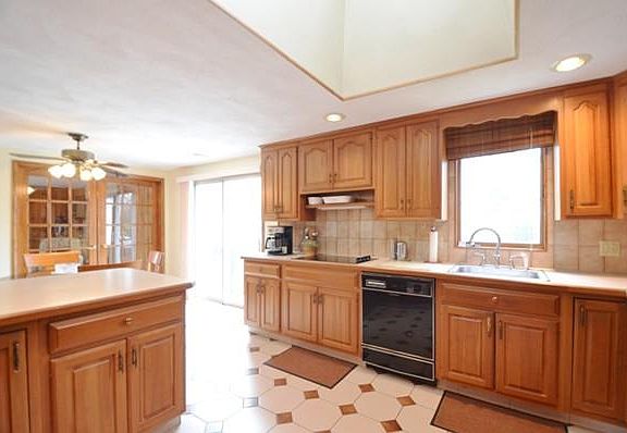 Beautifully Maintained Split-Level home on large lot! Spacious kitchen offers oak cabinets w/ ample amount of storage & countertop space! Breakfast bar, dining area & sliding glass door leading out to the deck! Dining Room boasts gleaming HW flrs & lots of natural light. Enter into your Living room through beautiful French doors w/exposed beamed cathedral ceilings, ceiling fan, and sky lights. Good size bedrooms w/ lots of closet space! Lower Level complete w/ Laundry room, office & direct access to garage. Family Room featuring ceramic tile floor, fireplace w/ wood stove insert & wet bar! Great place to entertain! Step outside onto your covered patio overlooking the large backyard - offering tons of outdoor living space & storage shed! Central Air,1 Car Garage along w/ 6 car driveway completes the package! Close to restaurants, shops & Rt 3! Don't miss out, see it today!