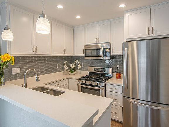 Adorable and very nicely remodeled throughout! Such a great floorplan with a bedroom and full bath on each level and a balcony off the kitchen and roof top deck upstairs for relaxing and major privacy! Grow a garden and bring your comfy patio furniture sofas! White shaker cabinets and glass backsplash. All appliances in like new condition! This is a great place to call home!