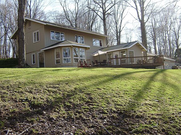 A place to unwind less than ninety minutes from Manhattan . A private country road leads you to this idyllic 3 bedroom, 2 bath waterside retreat on 1.57 acres in Timber Trails with walls of glass overlooking Pepper Pond. Boasts Great Room with fireplace where family and friends will love to gather that opens to a large entertaining deck, lawn and a detached 2 car garage. Easy NYC access by Metro-North trains or major highways.