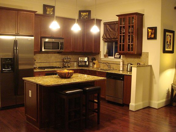 - Kitchen Features: Cabinets Stain, Pantry, View to Family Room, Stone Counters, Kitchen Island