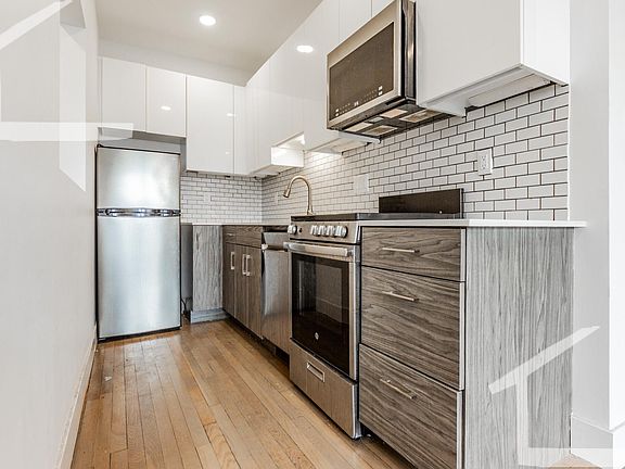 Renovated, 2BR/1BA featuring modern, fully applianced kitchen with quartz counters and stainless, modern baths, hardwood floors throughout, laundry in the building!