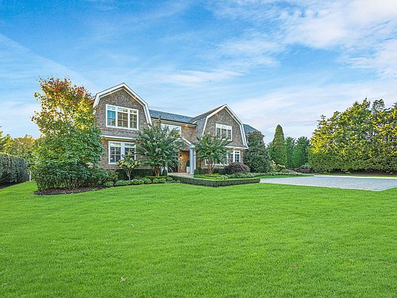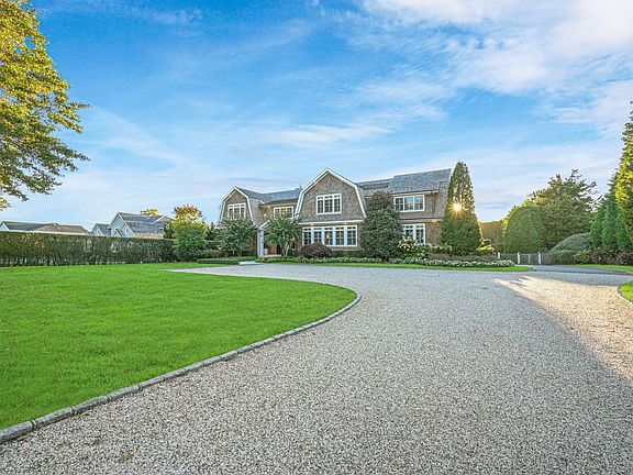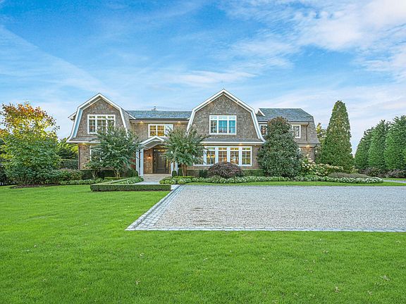 This inviting, custom-built, shingle-style, traditional Hamptons home with gambrel roof and manicured landscaping beckons you to step inside the front door to discover what lies beyond the threshold. With approximately 6,700 square feet above grade, the main home includes 7 bedrooms, 6 full bathrooms, 2 half bathrooms and a 2-car garage.The welcoming, double-height entryway draws the eye up to the coffered ceilings, a detail repeated throughout the home. Underfoot, wood floors flow throughout as well. Step through to the light-filled living room with fireplace and built-in bookcases featuring a wall of sliding glass doors leading out to the backyard. Adjacent to the main living room is the great room and kitchen with fresh, white cabinetry, four-seater island, top-of-the-line appliances, herringbone-patterned wood floors and 11-foot ceilings. A main-level primary suite and guest bedroom round out the first floor offerings.On the second level there are 5 spacious bedrooms, all with en suite bathrooms including the main primary suite with radiant in-floor heating, large windows, a walk-in closet and a spa-like bathroom. All bathrooms are finished with white tile and cabinetry for a timeless appeal. Other notable features of the home include 2 laundry rooms, 10-foot-plus ceilings on the second floor, custom wooden shutters on interior windows and an unfinished lower level.Off the back of the main level, an ample-sized deck features a built-in BBQ with stone surround, dining and lounging areas that lead down to the built-in, heated gunite pool, spa and pool house. For convenience, the pool house includes a full bathroom, kitchenette and living area for hours of uninterrupted outdoor fun.Sited on 1.5 acres in one of Southampton Village's most desirable areas, south of the highway, the home is conveniently located close to town and beaches. The property is enveloped by mature trees and tall hedges providing privacy and greenery. Come discover all this property has to offer.