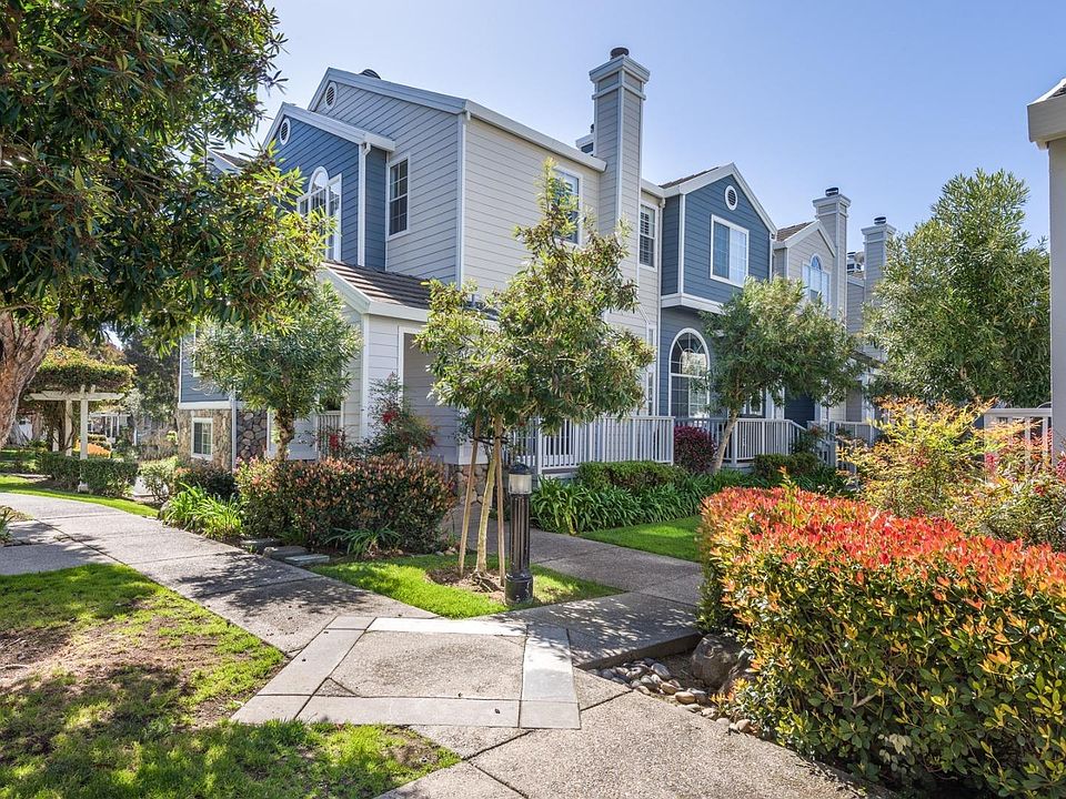 Welcome to this wonderful highly desired end unit in the Cove at CA Bayside! This Pacific model is a light filled townhome featuring 3 bedrooms & 2 1/2 bathrooms. Enjoy the open airy feel with high ceilings, wood floors, custom window shutters and a cozy fireplace located comfortably in the living room. The tri-level construction allows you to entertain in the separate dining area or you can create a more personal dining setting in the sun-lit eat-in kitchen and family room area. Upstairs on the bedroom level you will find a spacious master suite plus two additional bedrooms, a second full bathroom and custom closets. An attached two car garage provides ample space for the laundry area and plenty of additional storage found underneath the home. This home is a superb opportunity in the Cove HOA community and is located within the award winning Belmont-Redwood Shores school district, is close to shopping, the Bay Club, the Bay Trail and major Silicon Valley businesses.