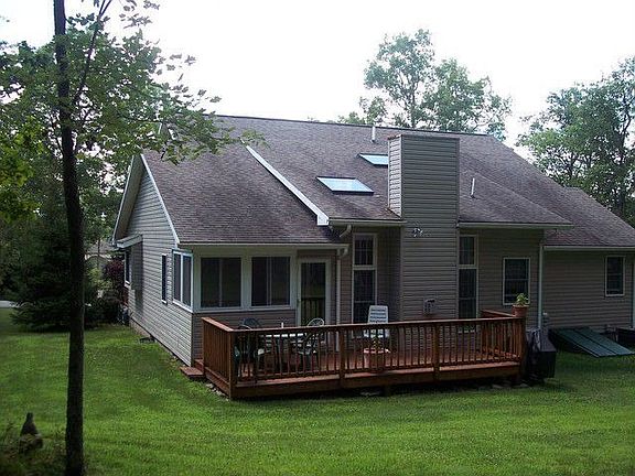 Woodloch Springs....JUST REDUCED Contemporary Country Custom Home, located on a cul de sac, with over acre of land and across the street from The Destination Spa. This custom home features such extras as: hardwood floors, corian counter tops, ceiling fans, central vac, Anderson thermo/tilt in windows, central air and sky lights. It also has 3 bedrooms (MBR on first floor), plus a den, 3 baths, large eat in kitchen, and a separate dining room. You will have plenty of room for family and friends to enjoy the very peaceful wooded back yard