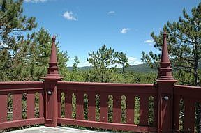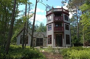 Offering 2.97+/- acres, this magical property features cathedral ceilings, fireplace, two bedrooms with balconies and an observation deck atop the tower. Pathways lead to the pool house with its, large gathering room with fireplace, a bunk room, two screened porch areas and a heated in ground free form pool. This is a property features many unique details such as intricately carved doors stained glass windows and many other embellishments. Wonderful property for relaxation and entertaining.