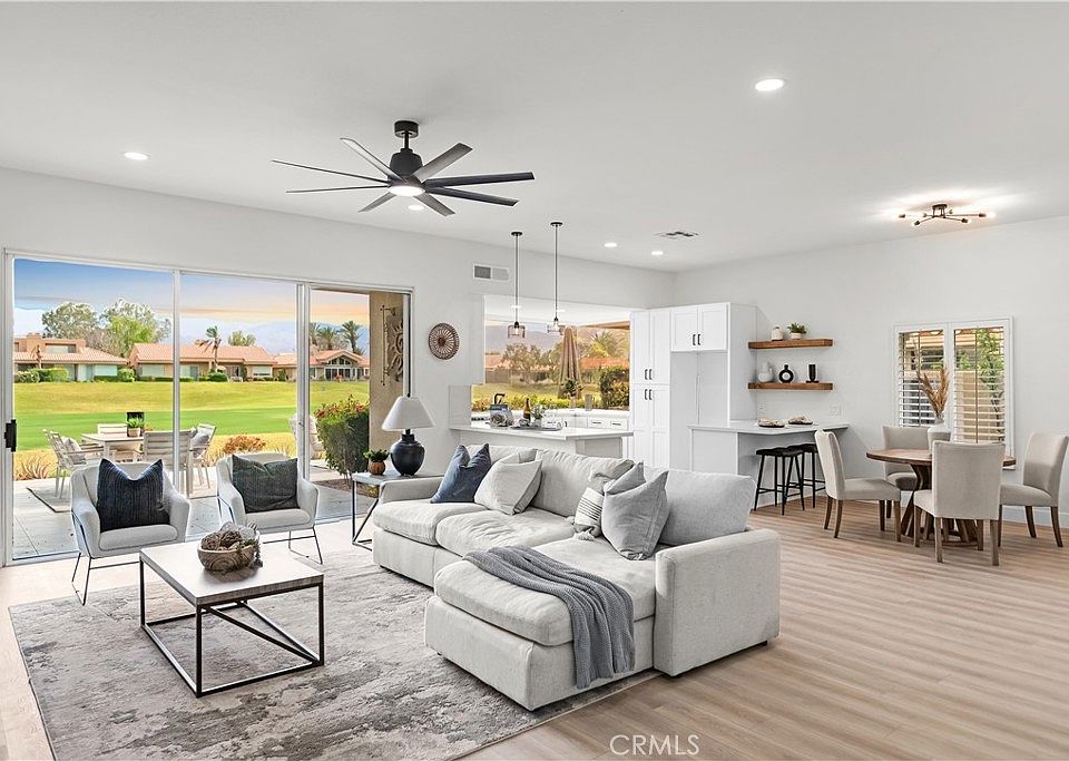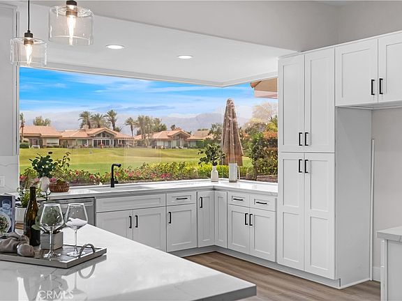 RARE, STUNNING, RENOVATED, South Facing Golf Course frontage home, MOUNTAIN VIEWS, Fee Simple Land…. These are just a few words to describe this newly designed 3-bedroom home in the highly desirable community of Mission Hills East. The kitchen was redesigned with entertainment in mind; enjoy the open floor plan to the living room with ample counter space, multiple eating areas, quartz countertops, new appliances, and new cabinets throughout the entire house. Enjoy unrestricted breathtaking views through the frame-less Kitchen windows overlooking the 7th fairway of the Westin Pete Dye Course. Large sliding doors lead to the expansive patio perfect for entertaining. LVP Flooring flows throughout the entire home. Primary bedroom has great closet space and a sliding door leading to the exterior patio. The primary bathroom features a beautiful walk-in shower, soaking tub, and double vanity. Garage with space for two cars and a golf cart with brand new garage doors. Private gated courtyard provides a serene entry to your new home, something not everyone has in Mission Hills. Air-conditioning unit 5 yrs old HOA includes- Trash, cable, internet, guard gate 4 community pools. Just a short golf cart ride to both Mission Hills Clubhouse & Westin Resort. Golf, Fitness, Tennis and Pickleball memberships available at “The Palm Club" at the Westin - ask for details! ( see supplements )