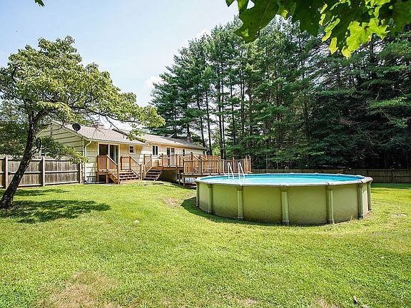 Fantastic ranch with Brand New Roof !! Welcome to this spacious 3 bedroom, 2.5 bath home located on nearly 2 acres on a cul-de-sac with many updates including new roof 2024, rebuilt main chimney 2024 (from roof up) ,renovated kitchen, refrigerator, dishwasher, replacement windows,sliders, front door, gutters, heating system, oil tank, mini split. Partially finished walk out basement offers additional living space. Owners have converted dining room into home office. Relax and unwind on one of the three decks overlooking the large 24' above ground pool. A very large portion of the private, level backyard is fenced in and perfect for family functions and pets. Great shed (12'x16') for storage of lawn and pool equipment. Enjoy the benefits of solar with a Tesla Power Purchase Agreement (see Disclosures) to help control the rising cost of electricity. Solar panels to be reinstalled (due to new roof) before closing. Schedule your private showing today!