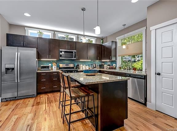 Arts & Crafts style home located in the desirable, quiet, and walkable West Asheville neighborhood of Falconhurst. GreenBuilt and EnergyStar Certified by JAG Construction in 2016, the owner has meticulously maintained and improved this home so that it still feels brand new. Open floor plan is flooded with natural light that shines on the gourmet kitchen with stainless steel & granite. High-quality vinyl plank was added to the lower level to create a warm family room or bonus room. Expansive upper-level back deck is perfect for entertaining. Lower level has a covered patio and a deck with fire pit for warm cozy evenings, or walk into town and enjoy all the restaurants, shops, and music venues WAVL has to offer like Nine Mile, Sunny Point Cafe, Biscuit Head and Isis Music Hall.