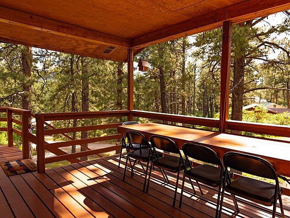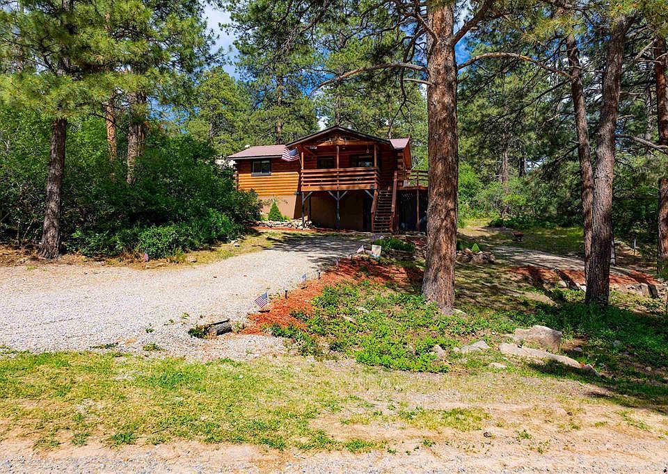 Log home on a 1/2 acre corner lot in the pines with both central water and central sewer. Killer vacation rental potential as this is located only 25 minutes from Durango, 20 minutes from Lake Vallecito, and 15 minutes from Bayfield. Wraparound deck is covered on the west side and open on the south side. Heated basement has tons of storage space and a laundry area. Additional parking pad for an RV, boat, or utility trailer. Only 400' to the Forest Lakes 160 acre open space land, which then goes on to border thousands of acres of the San Juan National Forest. Enjoy hiking, riding, hunting, and camping right out your back door! Lake Simpatico is less than a 1/2 mile away where you can fish for trout and bass. This cabin is located at 7650' elevation with good year round access. Annual taxes are $1,580.72. Monthly HOA dues of $100 include water, sewer, trash and road maintenance/snow removal.