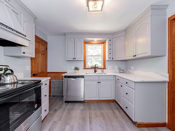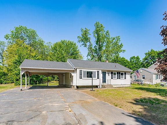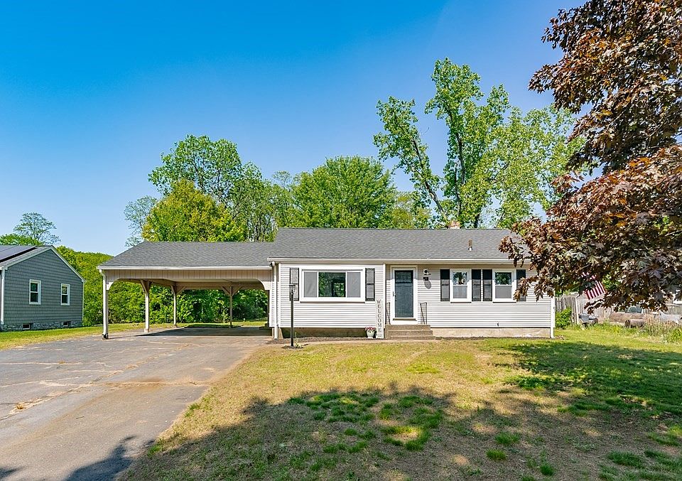 Picture perfect home in an ideal location. This 2 bed, 1 bath Ranch has been renovated, highlighting great features that include an updated kitchen with quartz counters, stainless appliances and new flooring. Head through the charming archway to the living room featuring refinished hardwoods, and a picture window letting in the natural light. A formal dining room, fully remodeled bathroom, and 2 ample sized bedrooms complete the main living space of this home. The finished basement space offers additional square footage that could be the perfect family room, media room, home office or gym – the possibilities are endless. Additional upgrades include a new roof, windows, water heater, front and back door, new flooring and refinished hardwoods, a younger boiler, and a 2-car carport. Enjoy the outdoors from the large, level yard, or head to the Southwick Rail Trail with access right at the top of the street! Truly nothing to do but move in. Schedule your private tour today!
