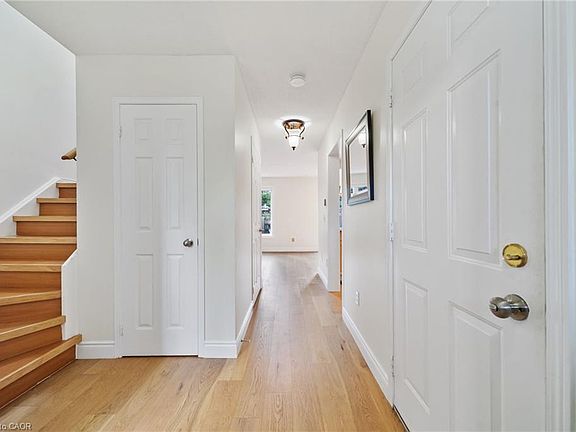 Lovely 3 bedroom end unit for sale in Dundas! Featuring engineered hardwood floors on the main level (2024), newer carpet in basement (2024), brand new carpet in two upstairs bedrooms (2025), eco-flow toilets throughout (2024 & 2025), waterproof laminate flooring in the laundry room and downstairs bathroom (2024), as well as in the upstairs bathroom (2025), newer front door (2024), large primary bedroom that can easily fit king size bed, driveway that can fit up to two mid sized vehicles, and an inside entrance to the garage! Enjoy a morning coffee in the fenced backyard offering privacy, walk to nearby parks and trails as well as schools! Bell Fibe internet is currently included in condo fees along with a Bell TV package. Visitor Parking is plentiful!