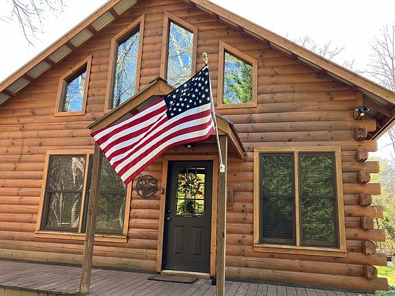 Discover this rare log home nestled on beautiful Owl Creek, set on over an acre of picturesque land! This well-cared-for chalet features wood floors throughout, a welcoming great room with a cozy corner gas log fireplace, and a master bedroom complemented by a second bedroom with direct access to the back porch. Conveniently located on the main floor is the laundry room, and a spacious bonus loft offers flexible space to suit your lifestyle. And, furnishings included as well as a 22KW generator! The kitchen is equipped with a breakfast bar and all essential appliances, making meal preparation a breeze. Step outside through additional doors to a covered porch that overlooks the serene creek—perfect for enjoying the soothing sounds of nature or gathering around the firepit on cool evenings. Fiber Optic makes for easy and fast internet connection. And, there's a 50A RV/car charger! With easy access off a state-maintained paved road, this charming property is just under 15 minutes from historic downtown Murphy. This delightful home is waiting for you to make it your own!