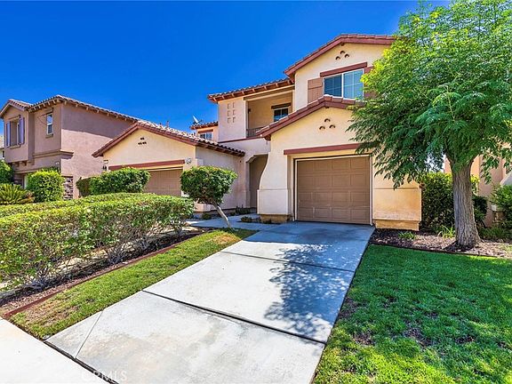 Welcome to 11 Plaza Valenza...the perfect blend of luxury and comfort! Nestled in the prestigious community of Tuscany Hills, this exquisite 4-bedroom, 3-bath residence offers breathtaking lake, golf course, and mountain views! NEW flooring and paint throughout, and NEW air conditioner installed August 2024! Grand Entrance~~a stunning entryway with soaring ceilings, leading to a beautifully designed open floor plan. Formal Living Room~~features a cozy fireplace, surrounded by custom accents that add a touch of warmth & style. Elegant Dining~~perfect for hosting, with upgraded lighting that creates the ideal ambiance. A convenient niche adds extra functionality, making both casual meals & formal gatherings seamless. Gourmet Kitchen~~boasting luxurious and durable granite countertops & backsplash; a huge center island with extra seating and expansive counter space, sleek stainless-steel appliances, and additional storage and prep space in the adjacent butler's pantry. Spacious Family Room~~connected to the kitchen and offers backyard access for perfect indoor-outdoor living. Designer touches surround the fireplace, adding warmth & charm; plus a built-in media niche for your entertainment needs. Serene Sleeping Quarters~~primary suite features a private balcony with commanding views; a large walk-in closet; a soaking tub; walk-in shower; and dual sink vanity. Secondary bedrooms are spacious, bright, and feature ceiling fans; and one bedroom has a private balcony attached. Convenient Laundry~~dedicated space is fully equipped with a washer, dryer, utility sink, and many cabinets. Amazing Backyard~~perfect for indoor-outdoor living with a large deck area & covered patio, providing shade & comfort for all-weather enjoyment. Dual Garage Space~~allows plenty of room for vehicles, storage, & projects. Community Amenities~~the impressive Tuscany Hills rec center is nearby and provides resident amenities such as the Olympic sized pool, spa, fitness center, tot lot, pickleball and tennis courts, banquet room, and picnic area, along with several other parks scattered throughout the community. Close to schools, shopping, the 15 freeway, Ortega Highway, Lake Elsinore, Storm Stadium, the internationally known Motorsports Park, and the recently opened Launch Pointe Recreation Destination & RV Park. Plus, all the valley's amenities are close enough to enjoy, but far enough away to avoid the hustle and bustle. Don't wait! Call for an appointment today!