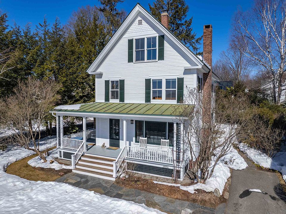 11 PLEASANT STREET- Classic, sophisticated in-town home abutting conserved land with stunning southerly views. This historic home has been thoroughly renovated and expanded through the years to combine original charm with modern convenience. The interiors are elegant and bright with high ceilings in many of the rooms, well-sighted to take in the views of Mount Ascutney, Mink Brook Nature Preserve, and the beautifully landscaped grounds. The kitchen was recently renovated to a premium, well-appointed standard, while a lovely living room with wood burning fireplace sits adjacent. The gathering rooms are grand yet balanced by more private, intimate spaces like the detailed central library and wine cellar. There are 3 spacious bedrooms on the second floor and a 4th on the third floor. Equally impressive are the outside components, with granite paths & patios, and a wraparound porch flanking the entertaining spaces inside the home. Sitting on the corner of desirable Pleasant Street– a charming and quiet one-way street just a short walk from Main Street and the Dartmouth College campus– this property is a rare offering for in-town Hanover.