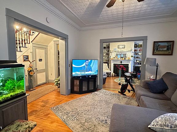 Solid 4 bedroom 2.5 bath New Englander with many updates in the past few years new roof shingles 2021, new boiler 2022 plus new pellet stove in 2023; new circuit breaker panel, new paved driveway, just to name a few. The once over-grown backyard has been reclaimed and chain link fence put up to keep the fur babies in, wrap-around porch, screened sun room, and patios for enjoying the outdoors, many perennial flower beds and vegetable gardens. Walk inside, hardwood floors & tin ceilings in living room, built-ins in the family room, original Youngstown metal cabinets in kitchen, formal dining room, half bath conveniently tucked-away under the stairs. Going upstairs, there are 4 bedrooms and a full bath, and front and back stairs for easy access to 1st floor. There is another full bath in basement, where the new sump pump keeps the basement dry and providing lots of storage space. Come take a look!
