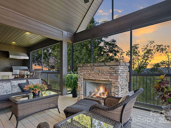Amazing 180 year round VIEWS from this highly coveted townhome in North Asheville. Situated at the top most part of the mountain in The Views of Reynolds Mountain. Composite decks and screen porches on both levels. Outdoor fireplace and built-in grilling/kitchen area on main level excellent for entertaining. Main level primary bedroom suite with steam shower. Lower level has two bedrooms with ensuite bathrooms, family room and large recreational room perfect for a home theater or wine storage. Additional sound proofing between units and icynene foam insulation. Crawlspace is sealed. Exterior is a lovely pebble dash. Home comes with built in sound system, generator, central vacuum system, and Viking appliances. Nice oversized garage on main level. If you are looking for a lock and leave property or a full time home, look no further. Enjoy a community park with trails and picnic area. HOA for the views maintains yard and cleans gutters once a year.