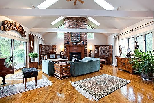 This resort-like property offers 7000 square feet of luxury, yet low energy costs due to advanced technologies (solar cells and geothermal heat). Nestled in a sylvan setting, yet within an affluent community with excellent schools. Seclusion, yet proximity to services. This 3.3-acre property in Warwick, New York, combines privacy, tranquility, fresh air and spaciousness with environment-friendly advanced technology. · swimming pool · tennis court · magnificently landscaped 1.5-acre back yard. Comfortable lodging The architecture of the house is long, rambling and fascinating. From the street, the house’s tasteful façade belies both its 6100 square feet of floor space and the resort-like back yard. The spaciousness allows entertaining on a grand scale, while its location on a private road grants privacy. While spacious and expansive, the ingenious design permits one to enjoy a surround-sound movie in the Great Room without disturbing anyone else in the house. The house comprises two buildings connected by a long gallery. · The “main” building contains § four bedrooms § three baths, § formal dining, § a bright, high-ceiling living room with fireplace leading onto a stone-flagged patio, § a comfortable family room that incorporates the modern kitchen and a breakfast area, with an efficient wood stove. · A walk down a window-lined gallery brings one to a separate quarters that can accommodate visiting family with it's own kitchen and bath § A bathroom with jacuzzi, § A library § A sleeping loft. § A massive brick fireplace open on two sides. Modern and green technologies § a ground source (“geothermal”) heat pump for both heating and cooling, installed in 2005. This saves money (particularly since oil energy is climbing in cost) and is kind to the environment. § 1000 square feet of photovoltaic panels on the roof, installed in 2009 and invisible from the street, silently produce electricity all year long, absolutely maintenance free. In spring -- when they produce more electricity than the house can use – the excess flows into the utility grid, actually running the meter backwards! § A computer-controlled, 92%-efficient propane boiler makes hot water, and provides redundant heat supply. Recreation § Three skiing areas are within 20 minutes’ drive. The largest of these, Mountain Creek, sports 1040’ vertical skiing and 1000 snow guns. It is the centerpiece of a massive year-round recreation complex that includes a water park, mountain biking, and multiple golf courses and sports facilities at the Crystal Springs Resort. § Six miles from the front door is a trailhead of the Appalachian Trail, where you can day hike into Wawayanda State Park and the Hamburg Mountain Wildlife Management Area. Privacy without isolation In summer, when trees are full, no neighbors can be seen to the south, east or west. Yet the house is part of a quiet community of 40 homes, old and new, in a circular ribbon of private road maintained by a homeowners’ Association. Located only minutes from two supermarkets, and all the amenities of the village of Warwick, NY, your family can enjoy serenity without being far from restaurants, shops and entertainment. Charming rural community § Warwick is famous for its loveliness. Dairy farms and commercial orchards surround the village, where an eclectic mix of shops and restaurants line a traditional village business district. Applefest and the Creamery are only two of the local attractions. A fascinating artists’ colony, Sugarloaf, is nearby, containing a large performance venue, the Lycian Theatre. § Equestrians love Warwick, with at least 10 boarding facilities within a radius of 5 miles. Warwick Valley Schools are simply excellent, and are consistently ranked among New York’s top public schools.