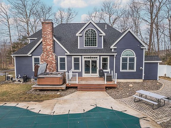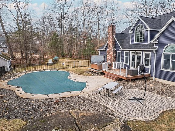 A Serene retreat from the hustle and bustle of everyday life. This impeccably maintained residence offers a peaceful havenwithout compromising on comfort or convenience. Nestled on a generous 2-acre corner lot, surrounded by lush parks, scenic walking trails, and conservation land, this 4-bedroom, 3.5bathroom home spans over 4000 square feet, providing the perfect blend of tranquility and modern living. The secluded backyard is an idyllic setting for quietcontemplation or outdoor gatherings, featuring a newly renovated in-ground pool, a relaxing hot tub, and a spacious stone fire pit. Step inside to discover a stunningremodeled kitchen adorned with new quartz countertops and top-of-the-line Sub-Zero and KitchenAid appliances. The master bedroom boasts a cozy wood-burningfireplace, while the finished basement offers an in-law suite or the ultimate "Man Cave." Recent upgrades include a newly installed central heating and AC system, a newroof, fresh exterior siding.