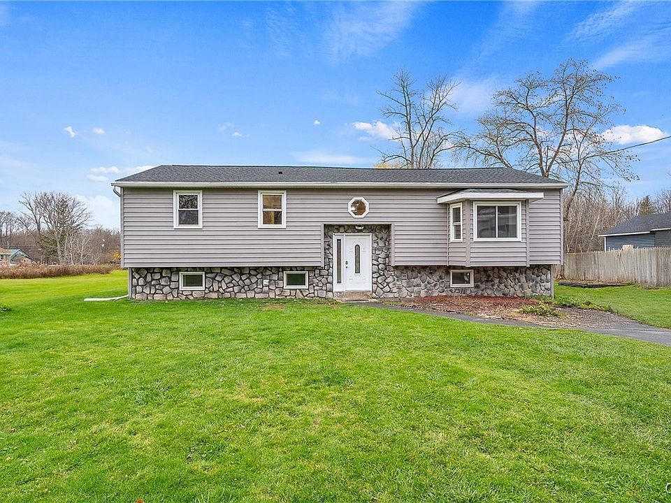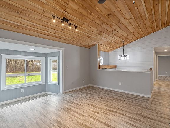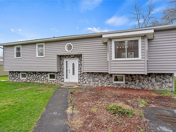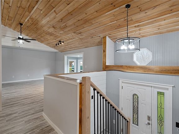 Stunning Modern Farmhouse Charm in this Updated Raised Ranch. Step into a beautifully renovated Raised Ranch that seamlessly blends modern farmhouse design with functional elegance. As you enter, you're greeted by a striking red oak staircase with sleek black spindles, vaulted wood ceilings, and rustic shiplap walls. Natural wood barn doors add warmth and character throughout. The open-concept main level is perfect for entertaining and everyday living. The spacious kitchen and dining area features a large butcher block island, a double oven/stove combination, and a brand-new wine/beverage cooler. Plenty of cabinetry offers ample storage, while built-in shelves neatly house a new microwave and air fryer. The glass, tile, and stone backsplash, accented with tin details, brings an artisanal touch, and motion-activated under-cabinet lighting adds both style and convenience. A new dishwasher and a Samsung refrigerator (just one year old) round out the kitchen upgrades. Sliding glass doors from the dining area lead to a newly built deck—ideal for outdoor dining and relaxation. The first floor also includes two bedrooms, including a spacious primary with a large closet, and a beautifully tiled bathroom with a double vanity and abundant storage. Downstairs, the lower level offers even more space with a cozy family/rec room, two additional well-sized bedrooms (each featuring natural wood barn doors), a huge new full bath, laundry room, and utility/storage areas. Smart features, like the Nest thermostat and Juno recessed lighting (controllable via your phone), bring modern convenience. The home’s major systems are updated too, with a new roof (installed less than two years ago), a new water heater, and the well pump electrical housing. Home is located in the desirable Phoenix School District. This home has been thoughtfully updated from top to bottom, making it move-in ready for your lifestyle. Total living space is approximately 2200 sq ft. Tax record square footage reflects first level only.