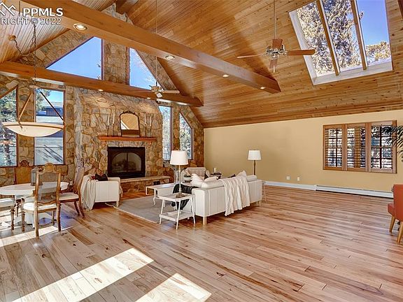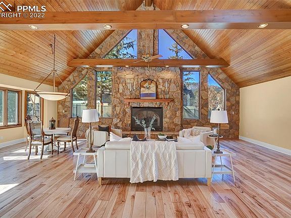 Welcome to the well established Broadmoor Neighborhood! Enjoy the view of the unique architecture as you drive into the community. Get ready for your breath to be taken away as you approach. If the 34,417 sq ft lot is not enough check out the beautiful mountain landscape that surrounds you! This stunning home features a DaVinci Roof, newly installed gutters, and the amazing natural light flowing from the sky lights! As you enter the double doors to the home the entry foyer greets you with gorgeous refinished custom cut wood flooring, in to the gourmet kitchen featuring double ovens, Wolf gas range, prep sink in the island, granite counter tops, William Ohs cabinetry, a subzero fridge, large pantry with wine storage, and a private chef's prep station! Cozy up next to the dining area fire place and your eyes will wonder to the beauty of the family great room! It features a stone fireplace, vaulted natural wood planked ceilings, a multitude of natural light streaming from all of windows, and French doors that lead to a courtyard patio of over 1,200 sq ft!. Did we mention that this home also features a MAIN FLOOR MASTER?? YES! As you venture down the master wing corridor hall and enter the spacious master you will be amazed by the enormous master bath! The master bath is very much a retreat of its own! It has a large jetted tub, stone walk in shower, double vanity, built in speakers, large walk in closet, heated floors, and its very own WASHER AND DRYER! Above the master and up the spiral stair case is a full bedroom that could double as a wonderful office space as well as an extension of the master. The upstairs also features 2 more bedrooms, a three quarter bath, and tons of storage space! Enjoy the quiet enclosed lower patio off the bonus room that has its own half bath, and directly off the kitchen past the main floor laundry room is a perfect private guest room getaway on-suit! As you can see this home HAS IT ALL!! It is a must see!