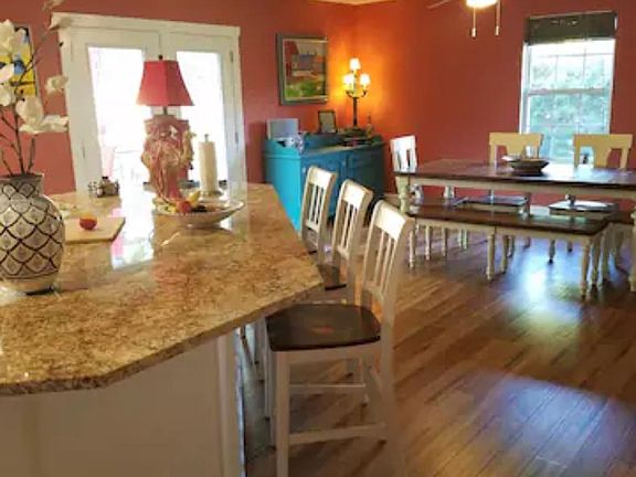 Unfurnished Spacious pet friendly single family home in West Asheville on a safe cul de sac, minutes to downtown and the heart of West Asheville. The house is rented unfurnished. The location is extremely quiet with no thru traffic and only nice homes and good owner occupant neighbors on the short street. The laundry is not shared . Washer and dryer are in a room next to kitchen ( I have not been able to remove the listing error from the public view) This house has an exceptional open split plan lay out with beautiful aged bamboo floors throughout ( except for tile floors in baths) . No carpeting and many windows that give a great light throughout. Both bathrooms are large with closets and beautifully tiled .the kitchen has gorgeous granite counters and stainless appliances . The kitchen is open and a double patio door opens from kitchen and dining room to the deck. There is a laundry room that doubles as a pantry off the kitchen. Bedrooms are large with a split plan. Master is very private ,12x20 with a very large walk in closet and a door to the deck. Blue bedroom is 12x 15.5 also with a walk in closet plus a built in shelved closet and third bedroom is 12x12 with a large closet. From the extensive partly covered deck you enjoy watching hundreds of birds and the peaceful huge level fully fenced 1/4 acre back yard surrounded by mature white oaks. The entire property is half an acre and feels like serene country but it is in the city. Most well behaved dogs and cats are welcome but we will need breed and temperament information . There is a 2 car garage and one of the overhead door is on automatic opener. This house has lot of storage space . there is also an exceptionally large landing and easy driveway. To access the house, you can either use the front stairs or go easy thru the back yard. Once inside the house is on one level. You must send me a short message with information about you, your family, your situation and pets and /or call me . i will not show the house until we have had an in person conversation. Unfurnished Renter is responsible for all utilities