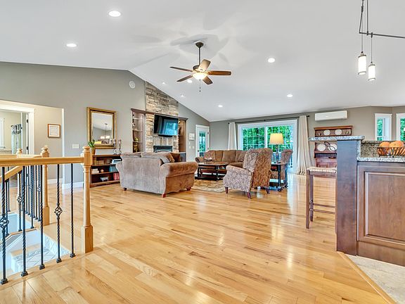 One-level living at it's best! This like new custom built home sits on prestigious Presidential Drive in Gray. Built in 2010, this sunlit ranch features an entertainers kitchen with granite countertops and stainless steel appliances, pantry & double gas ovens. The main living space has cathedral ceilings, propane fireplace with custom built-ins, radiant heat wood & tile floors, central vac, and 1st floor laundry. Primary bedroom suite with huge walk-in closet and en-suite bath with double sinks, walk-in tiled shower and soaking tub. 2 bedrooms and full bath are located on the opposite side of the home from the primary bedroom. Currently one of the bedrooms is used as an ideal office. The grand staircase leads down to a finished full of daylight den, craft or office room and a 4th bedroom with full bath. Relax in your sunroom year-round while the electric fireplace warms the room. 2 heat/AC pumps were recently added in the living room and primary bedroom. Chose your favorite outdoor entertaining space from the front porch to the expansive deck to the fenced in back yard. There's even a covered area on the deck to provide shade on the hottest days. Heated, 2-car oversized garage with additional storage above. Hardscape accents and 9 zone sprinkler system are just a few more amenities in this beautiful home. Generator hook up. Home is located across from Spring Meadows Golf Course and minutes to the turnpike. Call today for a private showing!