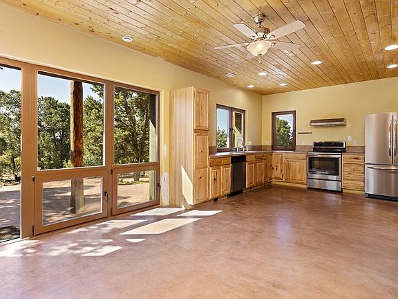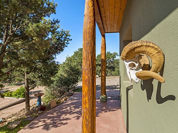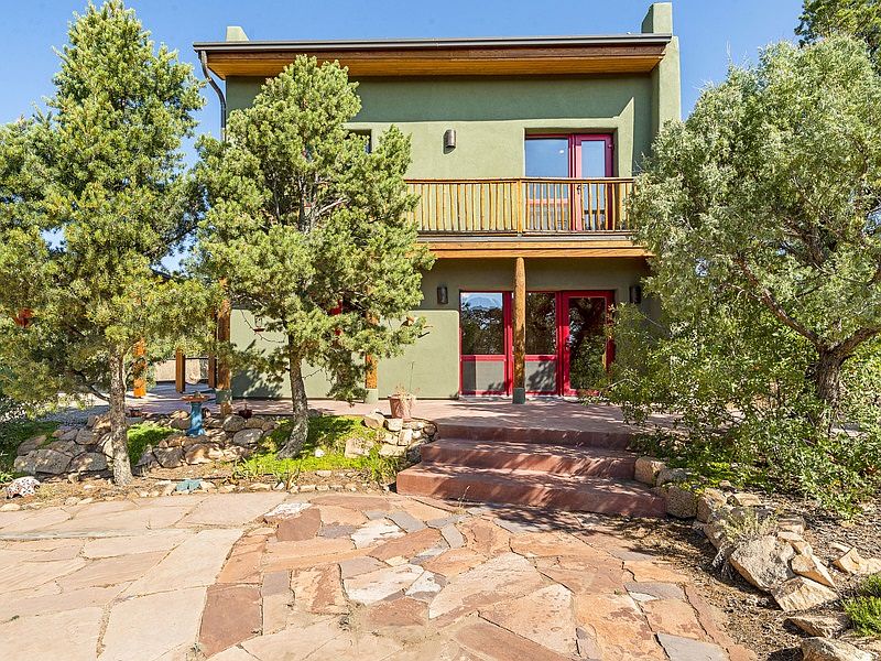 Come see this beautiful, private home in the foothills of the Sangre de Cristo mountains. Eco-friendly 8-year-old home with 3-bedroom 2-bathroom, passive solar on almost 5 acres. It is a two-level open concept kitchen and living room only 15 minutes from Santa Fe. Very close to Cafe Fina, Eldorado restaurants and shopping center. This home offers the following unique features: double framed construction with an R value of 38, triple paned windows, heat recovery air filtration system, pro-panel pitched roof, 3,200-gallon catchment system with irrigation and a playground.