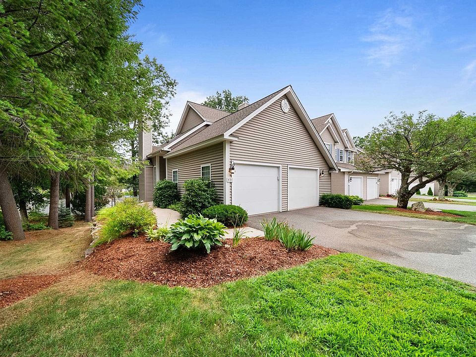 Convenient tranquility in one of Bedford's desired townhouse communities. This End Unit offers an open layout from kitchen to living room with vaulted ceiling. First floor primary suite along with a second floor bedroom suite and loft area for added bonus space. This well cared for townhouse features wood floors, granite counters, fireplace, first floor laundry and an abundance of natural light. Enjoy the spacious two car garage with easy access into the home. If you're looking for additional space, the walk-out lower level offers future expansion opportunities. The quiet, serene setting is close to shopping an amenities as well as easy access to major roadways. This is one that you will not want to miss out on.