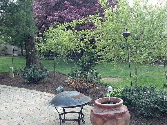 2 story Colonial with 2-car garage located in cul-de-sac. Large paver patio with elevated deck off dining room. Hot-tub and beautifully professionally landscaped 3/4 of acre yard with 3/4 fencing ensuring privacy. Finished carpeted basement excellent for use as office/play room with much storage space and wired for audio/video. Fireplace in living room and custom kitchen with half-wall counter provide expanded and open living space.