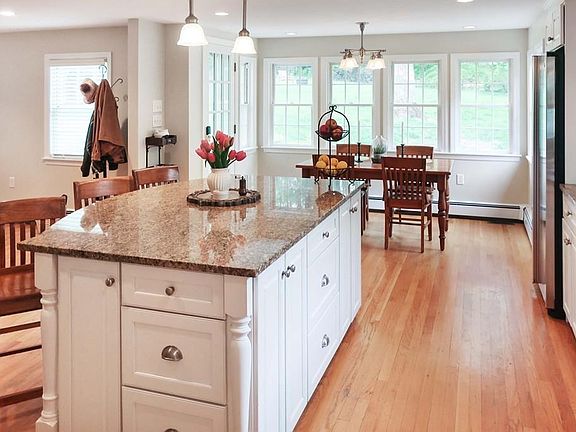 Center Entry Colonial in desirable Prospect Hill! Beautifully improved with a 2001 addition that features a heart of the home chef's kitchen with Viking stove, double width sink, breakfast island with wine rack, a windowed eating area opening to a private patio and yard surrounded by splendid stone walls. The first floor has a thoughtful floor plan, with- central work space; first floor laundry; pantry closets; a family room off of the kitchen; a dining room with lovely built-ins; a fireplaced living room with French doors accessing the family room. The second floor has- a cathedral ceilinged master bedroom suite with walk-in closet and double sinked master bathroom; three bright bedrooms and the family bath. Don't miss the finished lower level with mudroom space, a large playroom and a full bath. All this in a fantastic location convenient to Bridge School, Clarke Middle School, LHS, the "old Res", town center, recreation facilities, major routes and MBTA busline.
