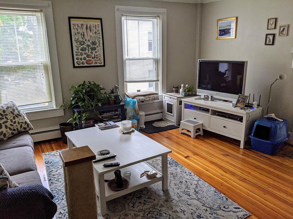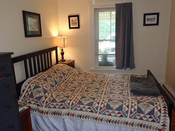 Inviting first-floor apartment includes an eat-in kitchen, two bedrooms (one roomy bedroom and a smaller bedroom that also works as a nice home office), comfortable living room with natural light, updated bath. Nicely set back from the street with a welcoming porch overlooking the lawn and garden, the house has a walk-out basement providing easy indoor storage for bikes and ski's etc. There is available hook-up for a washer/dryer in the basement which is accessible from inside the apartment. Owner pays for: Water, Lawn Care, Snow Removal Tenant pays for: Electricity, Heat