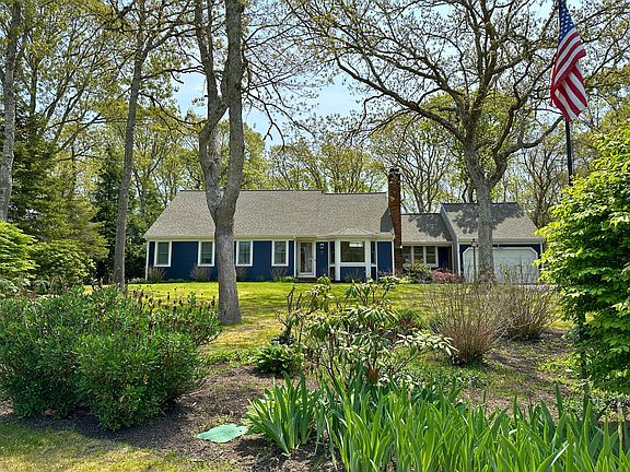 A Must-See Gem! Spacious 3 bedroom, 2 full bath, convenient one floor living ranch home in gorgeous neighborhood! Enjoy the best of both worlds: a serene setting and proximity to local amenities. Open concept layout and vaulted ceilings seamlessly blending living, dining and kitchen areas. Enhanced by the large screened in porch. Bonus room above oversized one car garage. New on demand natural gas boiler installed Feb. 2023 for cozy winters and energy efficiency. Central air for cooling, (new compressor 2020), newer roof, fhw baseboard heat, fireplace, renovated kitchen, and hardwood floors throughout. Basement has been framed out for renovation. Beautifully landscaped Cul de sac neighborhood. Centrally located and convenient to bike path, Cranberry Valley Golf Course and the mid-cape highway. Short drive to the beach. Underground utilities, irrigation system, underground dog fence and garden ready. Garage equipped with 240V outlet, ready for EV charging. Recent upgrades Azek rake boards, house painting, new gutters, 13 new windows, updated switches. New 3 bedroom Title V septic to be installed by sellers!!