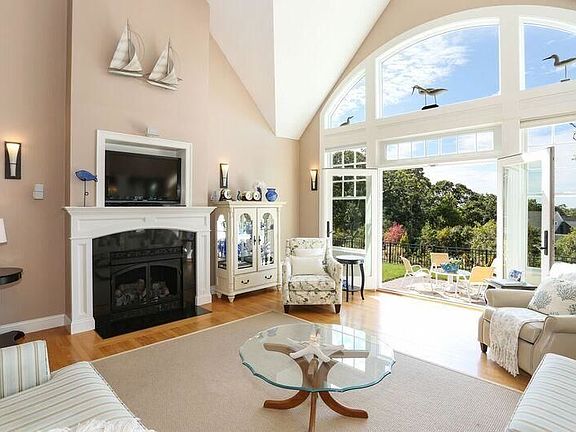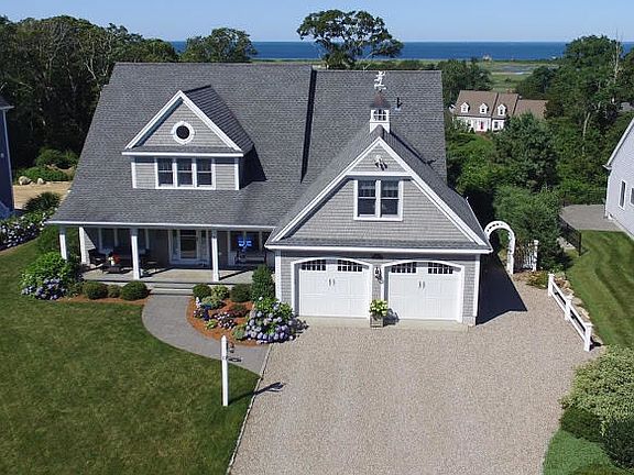 Its all about feeling bathed by the sun in this West Falmouth home, with lots of windows to ensure ocean views from the first floor and knockout views from the second. Enviable location with less than a mile to Chapoquoit Beach, the harbor, restaurants and the quaint village of West Falmouth. A spacious foyer provides entry to the dining room, kitchen and family room. There are four large bedrooms each with its own private full bath. The first floor master bedroom has access to the patio with cooling ocean breezes. The front of this charming Cape Cod home is complete with a front porch framed by blue hydrangeas. In back is a covered dining deck with access to the patio surrounded by a low maintenance yard.